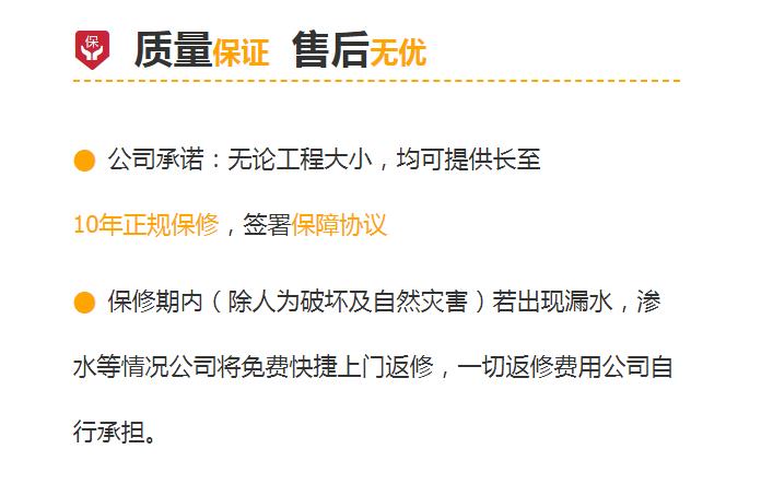 優(yōu)勢(shì)二:零缺陷防水服務(wù)系統(tǒng)將第一時(shí)間進(jìn)行免費(fèi)維修至原貌。